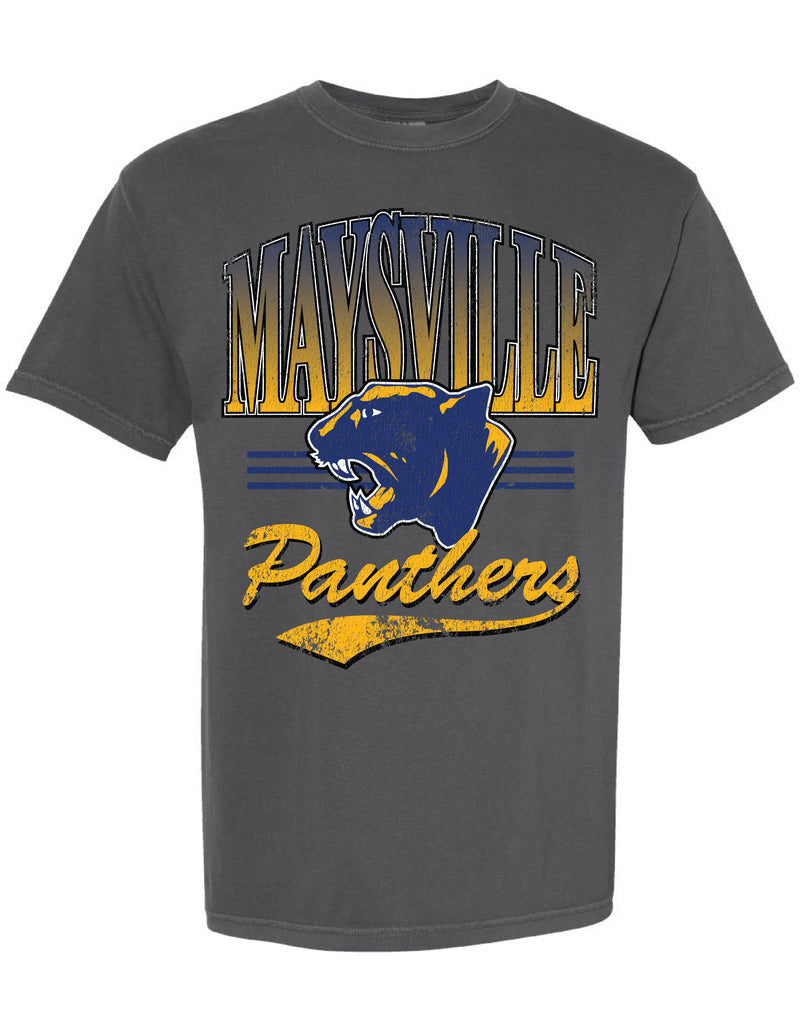 This design is the ultimate vintage - throw back fan shirt. Printed with a thin layer of silk screen print and all over distress it keeps it light and comfortable. This design is featured on the fan favorite Comfort Colors Tee and Crew.