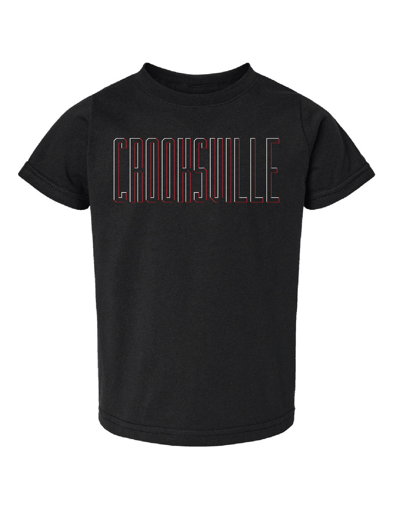 Red and White Silk Screen Print on Black Tee